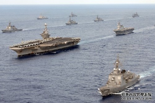 美日数十艘战舰组成编队在东中国海进行武力展示