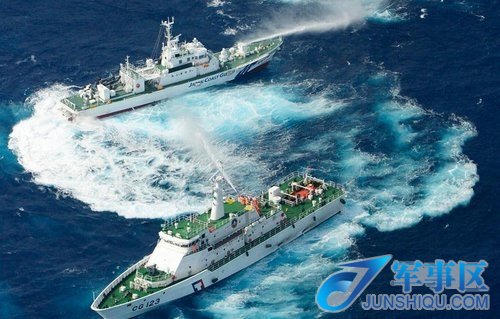 资料图:台湾“海巡船”与日本海保船相互喷水驱逐
