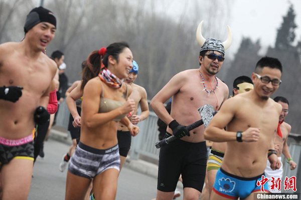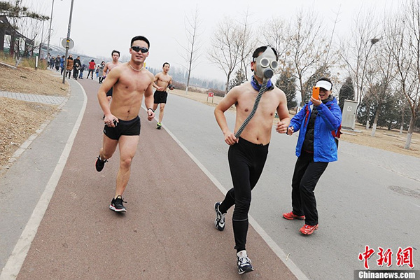 北京民众不惧重度污染参加“光猪跑”(1)(2)