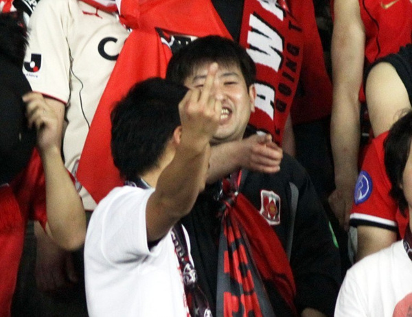 日本球迷恒大主场竖中指挑衅(1)(2)