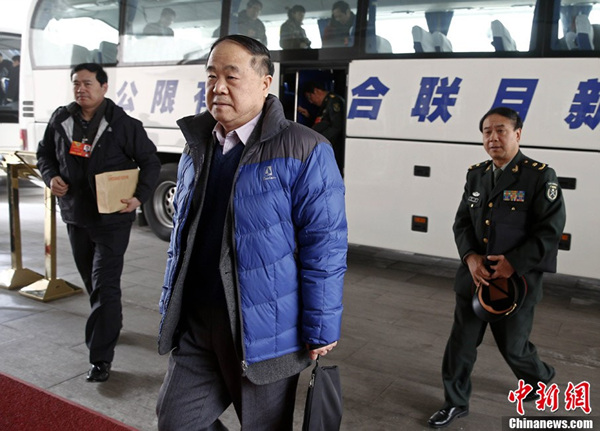 2月28日中午,新任全国政协委员、诺贝尔文学奖得主莫言现身驻地。