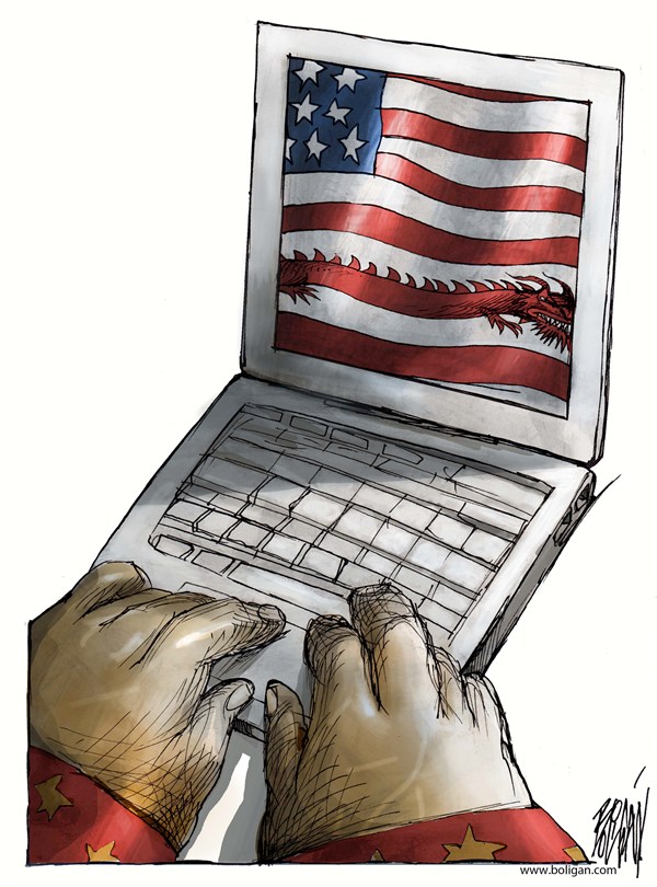 美国把所谓的“解放军黑客部队”事件炒作得沸沸扬扬,这回又拿漫画来进行讽刺,不过这也恰恰表明中国正在受到美国越来越多的重视。 当然,美国人的漫画也不光光是讽刺中国一方,拿自己政府开开涮也是合情合理的!