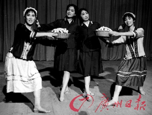 上世纪70年代初,在部队当兵时,女兵们正值花季,唱歌跳舞演节目是她们业余生活的一部分。图为上世纪70年代初,女兵们表演《大红枣儿送亲人》。