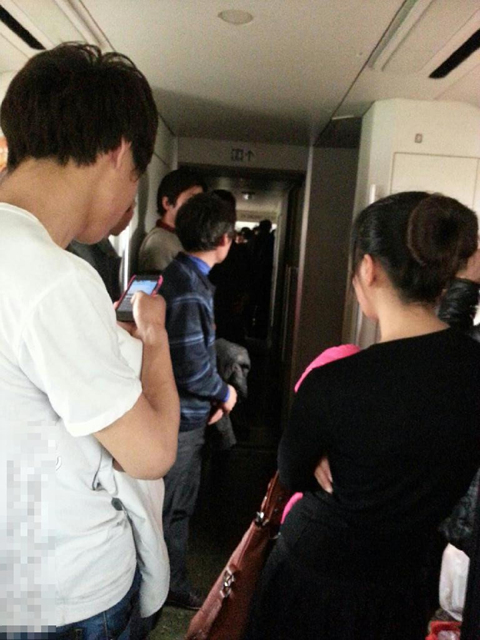 2月17日,D3012次动车,停驶一个多小时后车厢里乘客情绪焦躁。