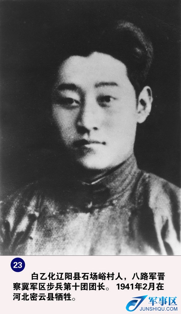 白乙化,满族,辽宁辽阳人,丰、滦、密抗日根据地的创建人,八路军冀热察挺进军第十团团长,1941年在战斗中壮烈牺牲。他曾用步枪打下日寇战机,“小白龙”的绰号让敌寇闻之丧胆。